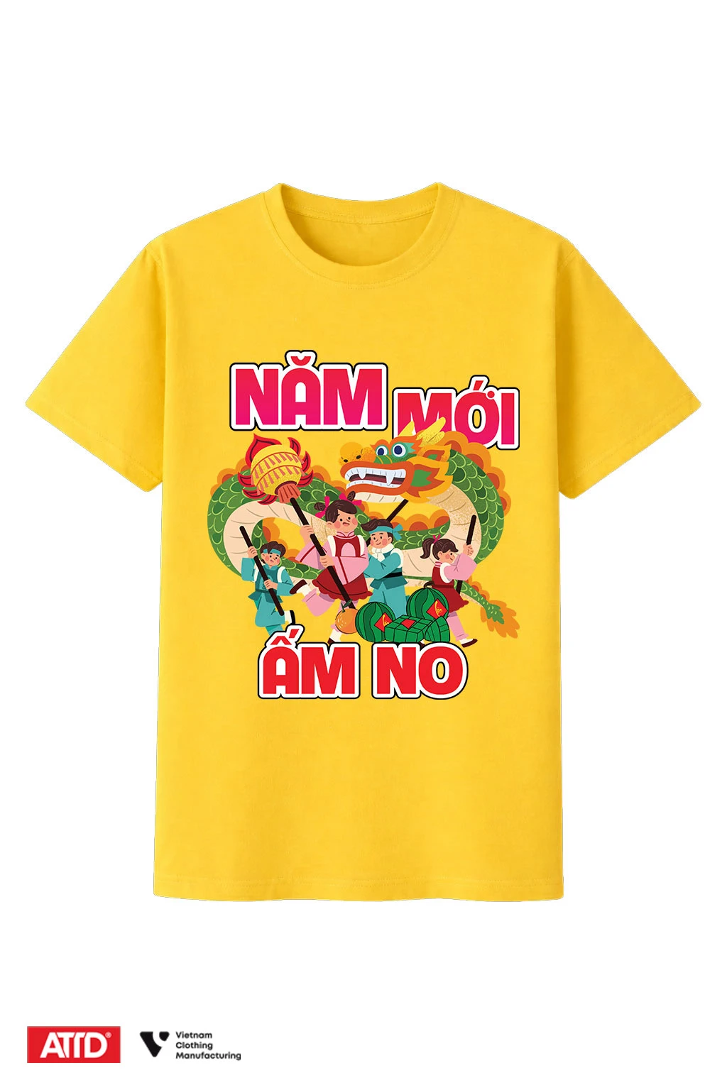 Mẫu áo tết với slogan "Năm Mới Ấm No"