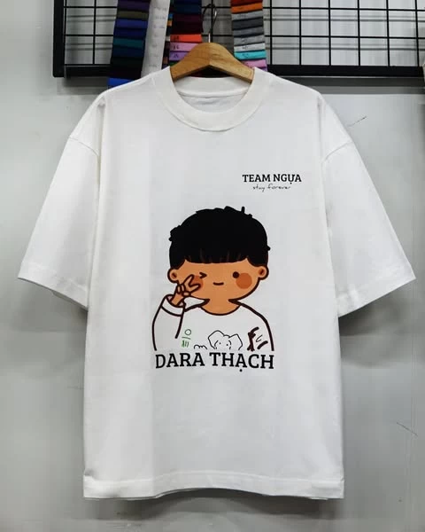 - Áo in hình chibi, slogan vui nhộn